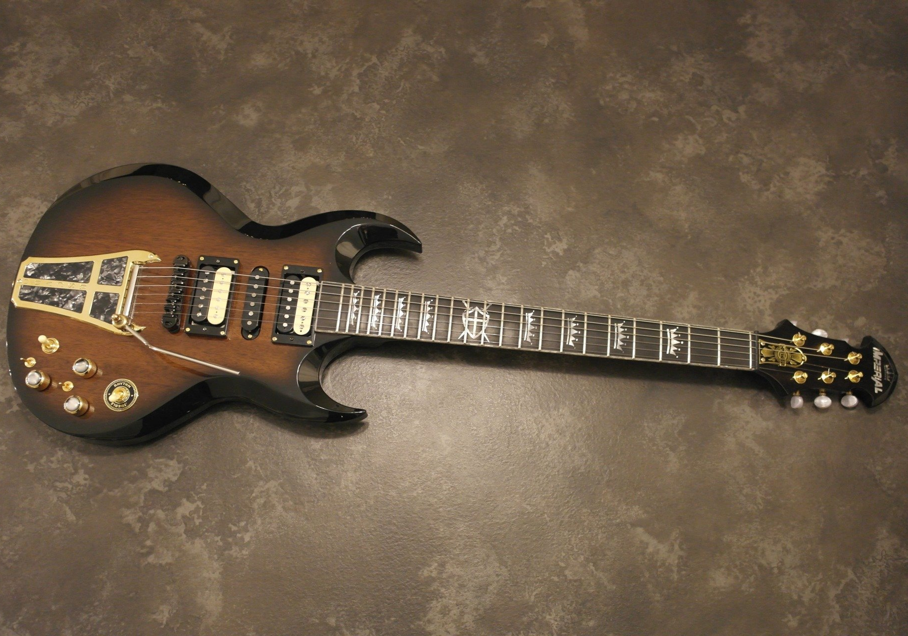 nata dalla forma di un classico e migliorata nel confort e nell'estetica, body in noce e manico in acero, scala corta tipo Gibson, hardware Gotoh e pickups Mama.